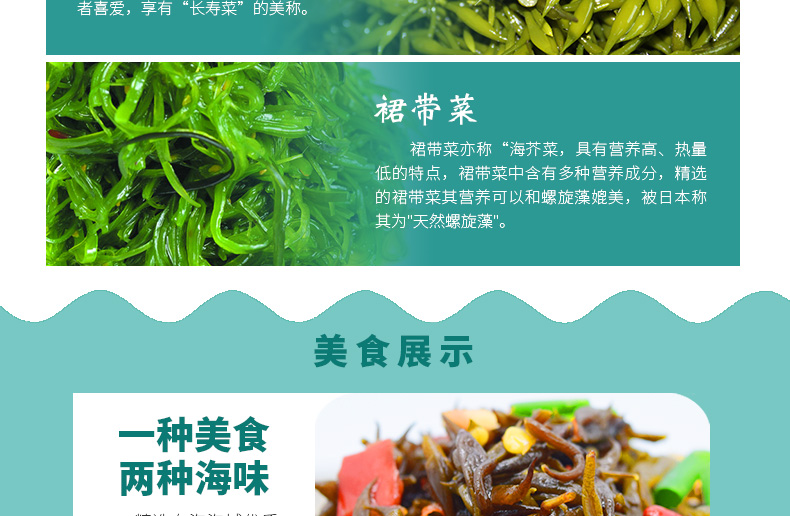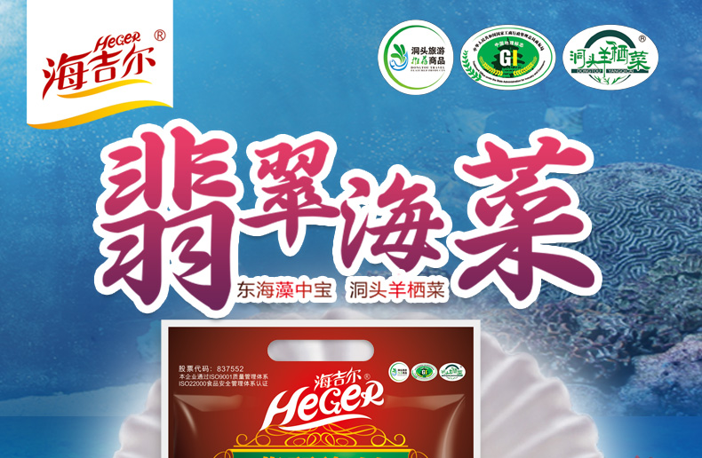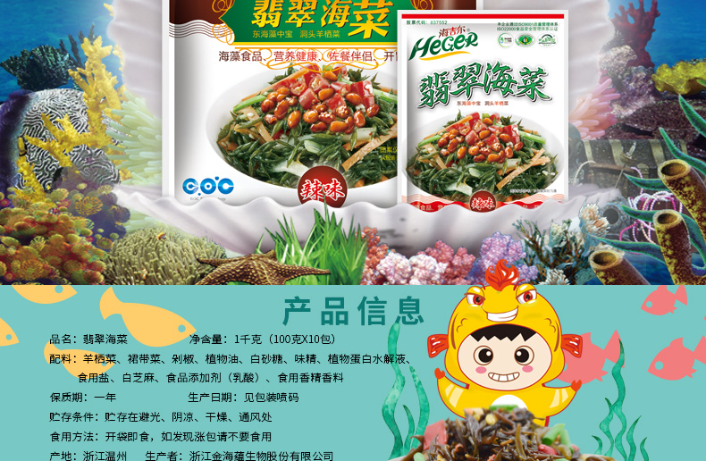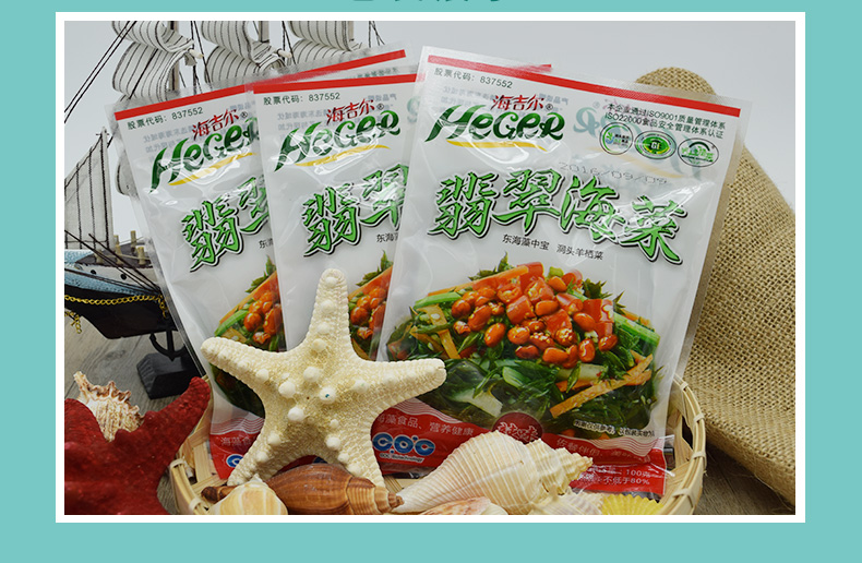 HeGeR Green seaweed, 100gX10 packets, Dongtou ready-to-eat Hizikia fusifarme, wakame, longevity seaw